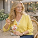 Kofta i läcker banangul färg som stickats i akryl/bomull. V-hals och trekvartsärm. Litet...